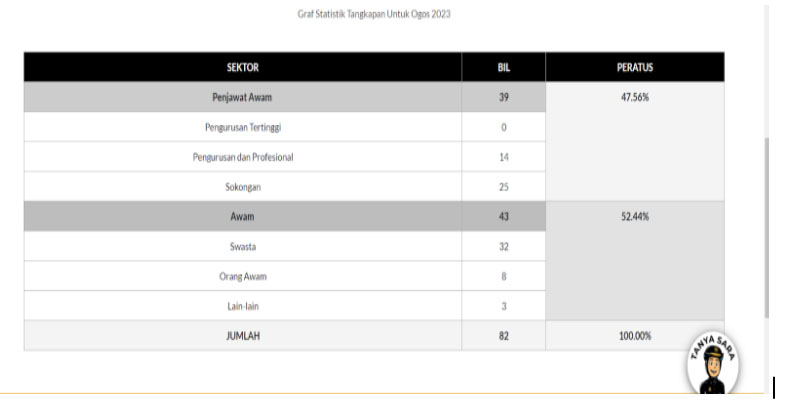 RAJAH 1: Graf Statistik Tangkapan untuk Ogos 2023 (SPRM)